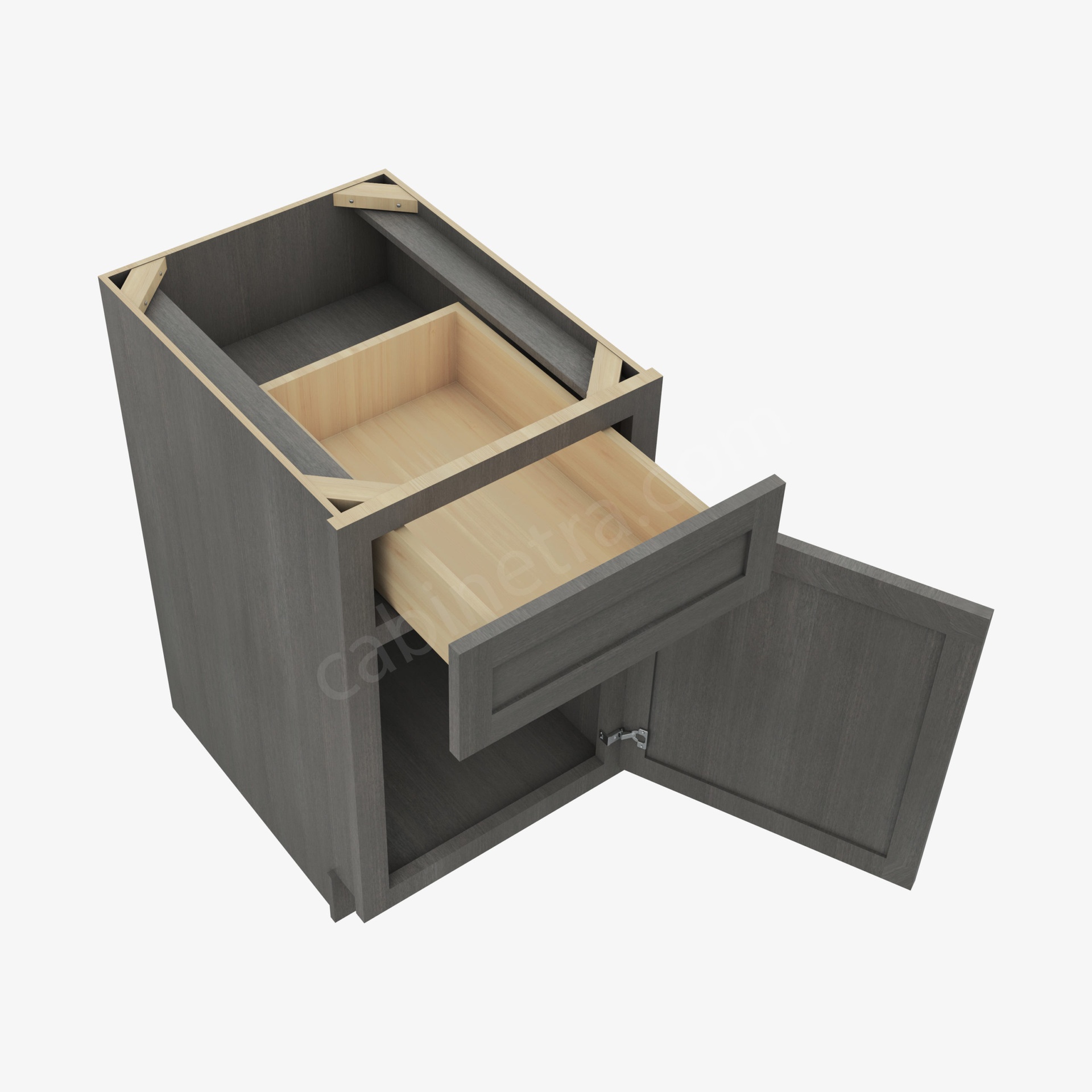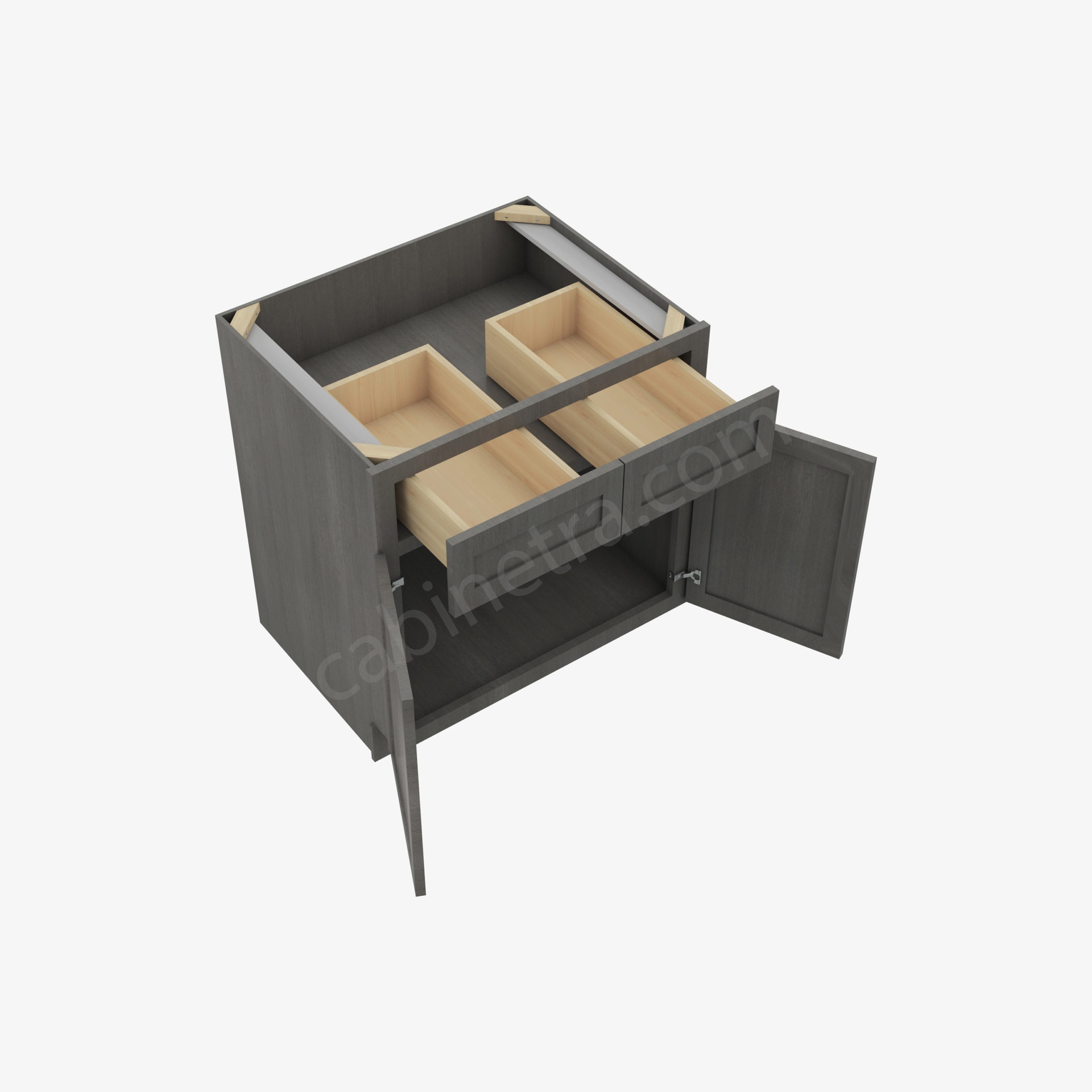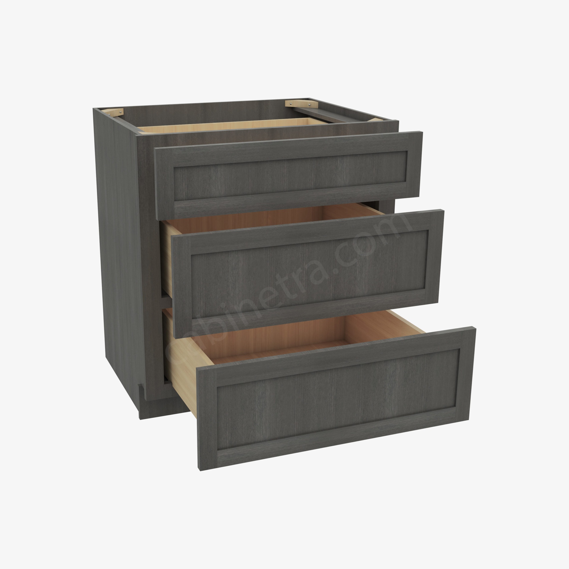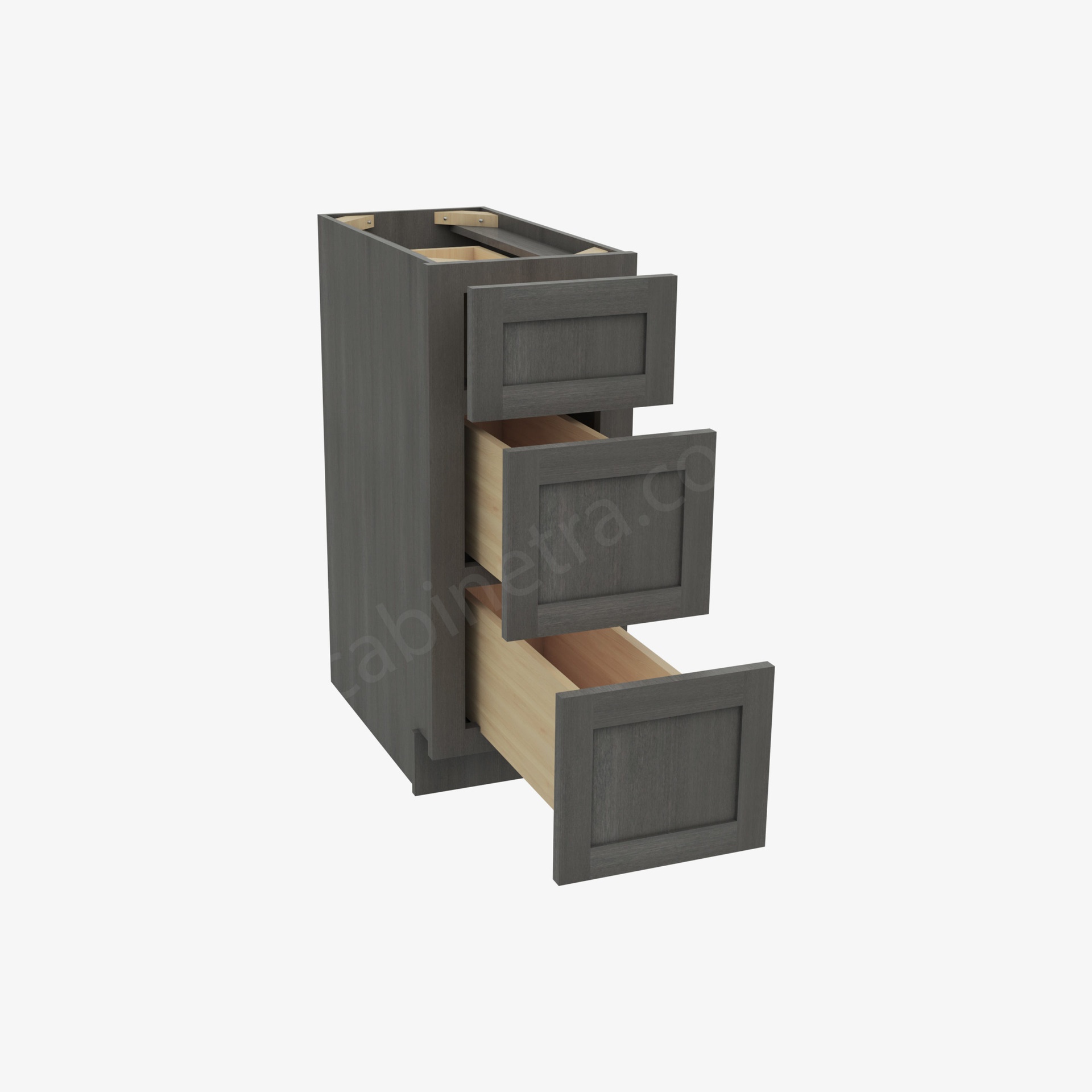The Greystone Shaker Collection from Cabinetra features the cut and frame that is signature to the Shaker Collection design. The stunning coloration adds a dramatic flair to the kitchen space and each facade is uniquely designed. These cabinets have the same soft-close technology that you’ve come to know from our collections, with the striking look of wood through a smokey lens.